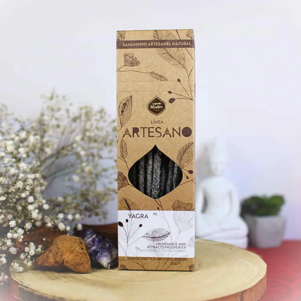 Fabriqué avec soin, l’encens Yagra reflète l’excellence artisanale. Chaque bâtonnet est composé de résine d’oliban, de carbone naturel, d’un liant naturel et d’une pincée de sel, garantissant une combustion pure et harmonieuse.